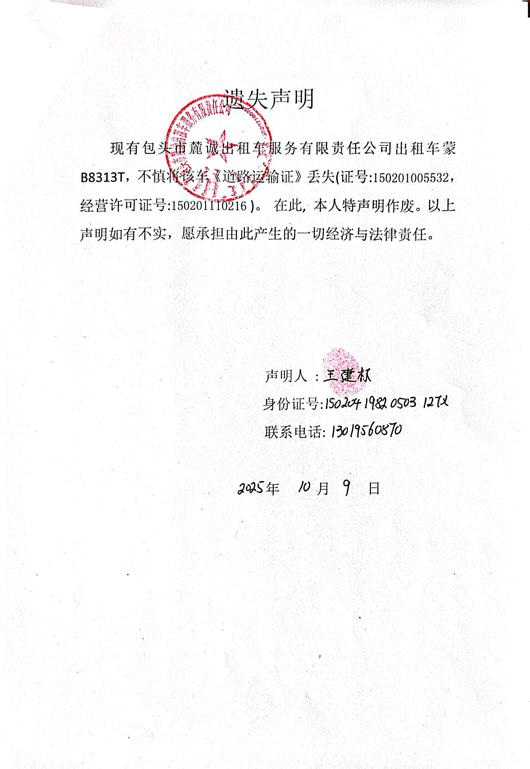 遗失声明(蒙B8313T道路运输证丢失,声明作废)