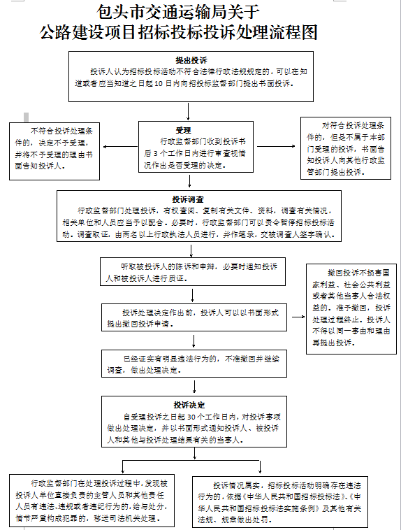 包头市交通运输局关于公路建设项目招标投标投诉处理流程图