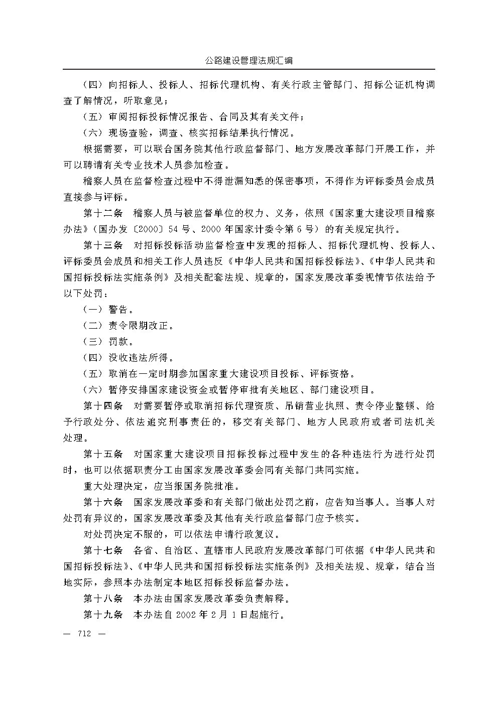国家重大建设项目招标投标监督暂行办法(中华人民共和国国家发展计划委员会第18 号令)